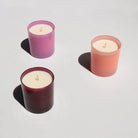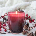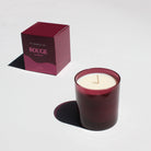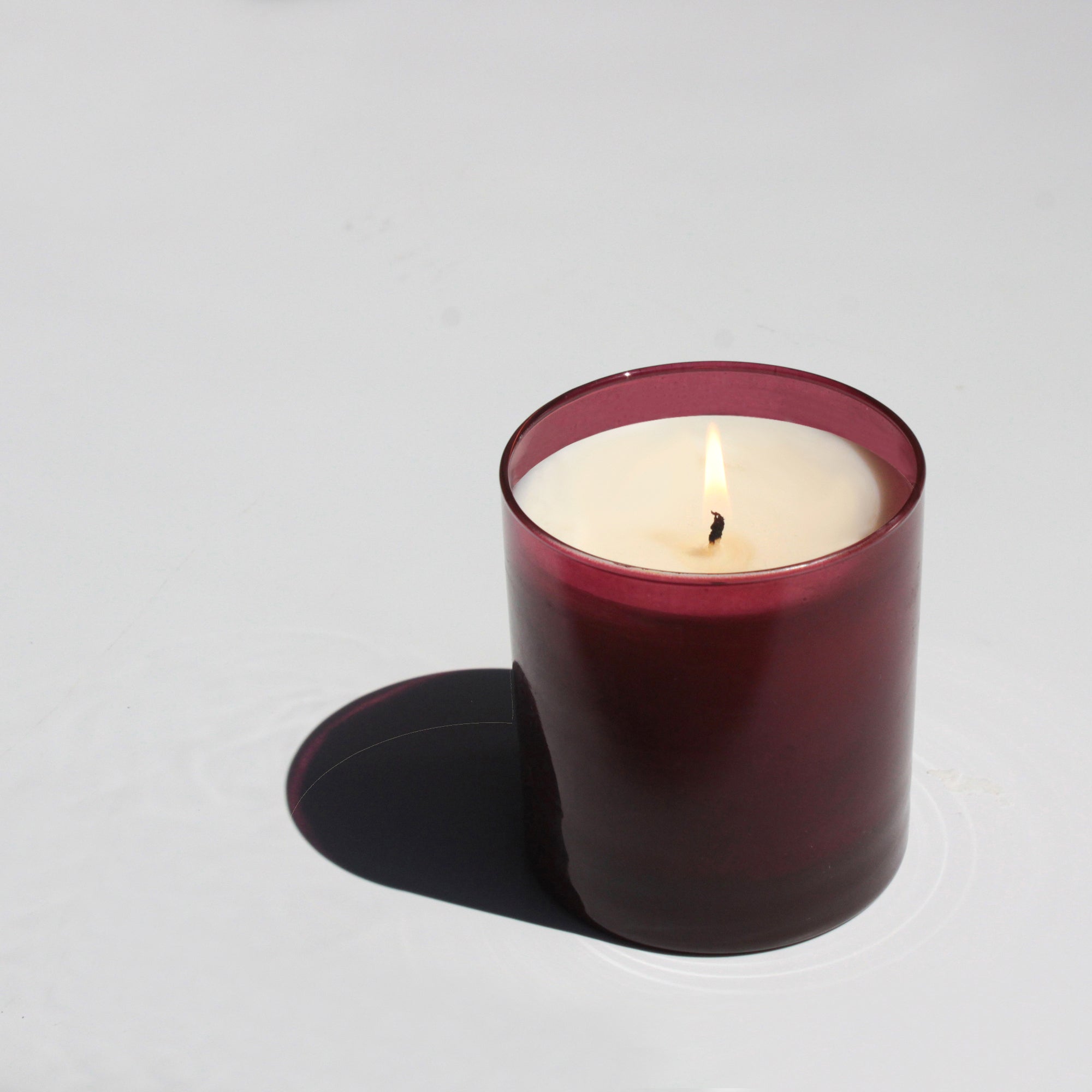-9 oz. soy candle in a translucent ruby glass tumbler, packaged in a matching box.