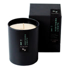 Candle is exclusively hand poured in a 10-ounce matte black glass jar with soy wax and packaged in a 2-part black box.