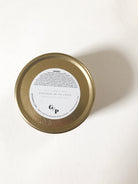 Each candle features a 4 oz. gold tin with lid. Our warning label is on the bottom of the tin. Top label area is 2.375" diameter. Recommended wrap label size is 9.125" x .9375".