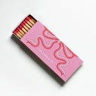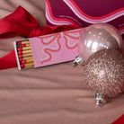 Matchboxes feature a pink and red bow design. A sliding tray contains approximately 17 red tipped safety strike matches per box.