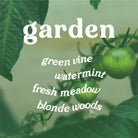 Garden features notes of green vine, watermint, fresh meadow, and blonde woods.