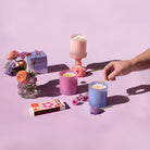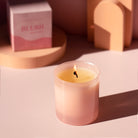 -9 oz. soy candle in a translucent pastel pink glass tumbler, packaged in a matching box.